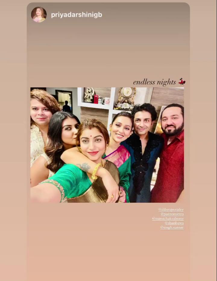এই পার্টিতে উপস্থিত ছিলেন শ্রাবন্তী চট্টোপাধ্যায় এবং তার চর্চিত প্রেমিক অভিরূপ। অন্যান্যদের পার্টিতেও একই সঙ্গে দেখা গেছে তাদের দুজনকে। এছাড়া এই পার্টিতে ছিল অভিনেত্রী পার্নো মৈত্রকে। এছাড়া অনিন্দ্য চট্টোপাধ্যায়কে। অনিন্দ্য সাথে অভিনেত্রী মিমি এবং পার্নো বন্ধুত্বের সম্পর্কের কথা জানিনা এমন লোক খুব কমই রয়েছে। অনিন্দ্য টেলিভিশনের একজন জনপ্রিয় অভিনেতা সম্প্রতি তাকে দেখতে পাওয়া যাচ্ছে স্টার জলসার ‘গাঁটছড়া’ ধারাবাহিক অভিনেত্রী শ্রীমা ভট্টাচার্যের বিপরীতে।