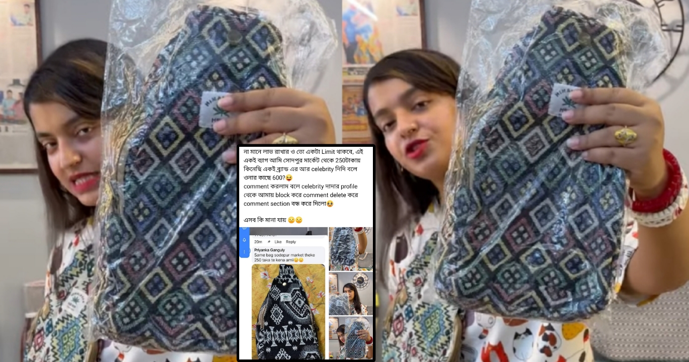 ফুটপাথে বিক্রি হওয়া হুবহু এক মাল ‘প্রিমিয়াম প্রাইসে’! চড়া দামে সস্তার ব্যাগে নিজেদের নামের ‘সেলিব্রিটি ট্যাগ’ লাগিয়ে বিক্রি করছেন রাজা-মধুবনী! প্রমাণসহ চালাকি ধরিয়ে দিতেই, মহিলাকে সরালেন দু’জনে!